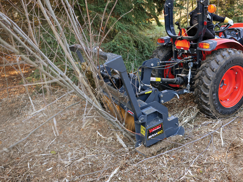 - Optional push bar guides trees and saplings to fall safely away from the tractor, ensuring controlled, safer mulching