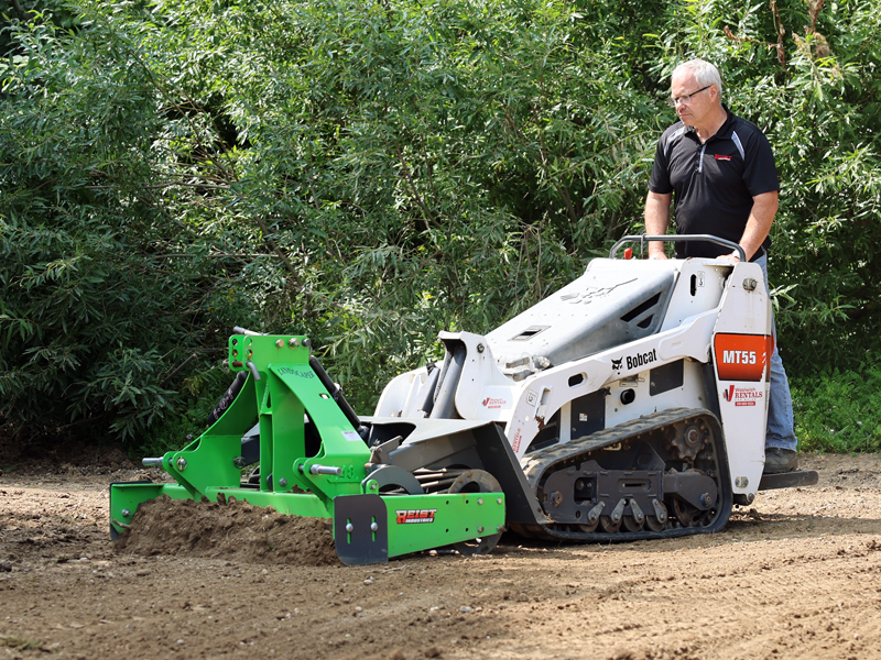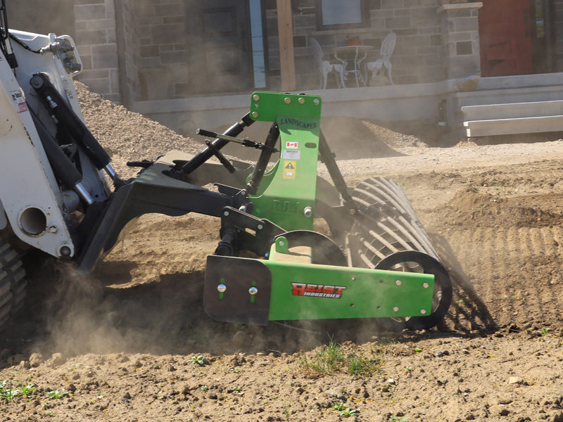 The Reist Landscaper does the work of a clodbreaker/ pulverizer, harrow, box grader, ripper and grass seeder. The Landscaper is perfect for golf course builders, commercial landscapers, public works departments, earthscaping, construction sites, or any project requiring grading and reconditioning of a soil or gravel surface. The Landscaper can be used to "finish" an entire site.