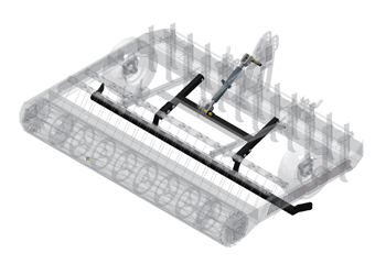 • The rear two rows of spring tines are offset and the pitch and height can be adjusted with a manual ratchet rack or an optional hydraulic cylinder